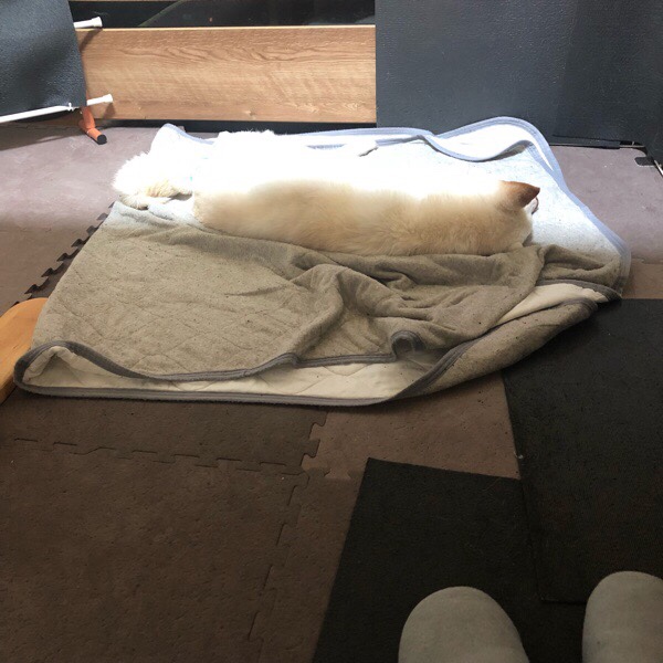 こちらが いつもの姿な感じ、お布団から はみ出し〜_:(´ཀ`」 ∠):