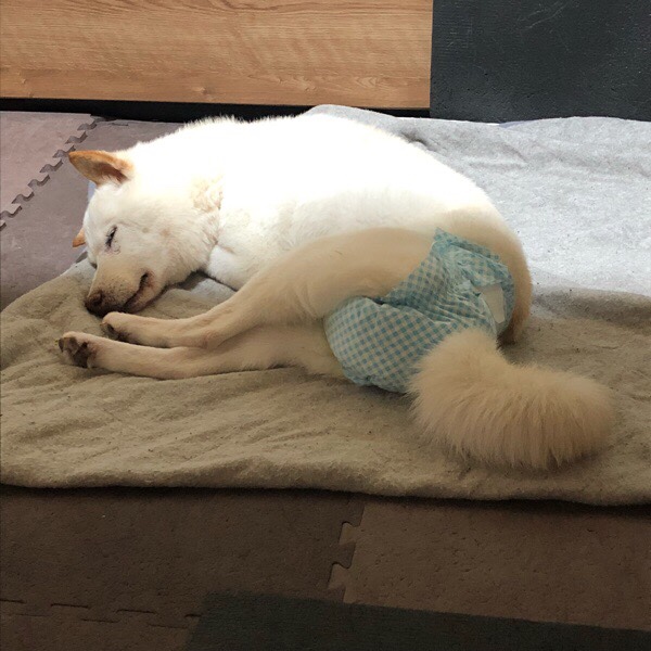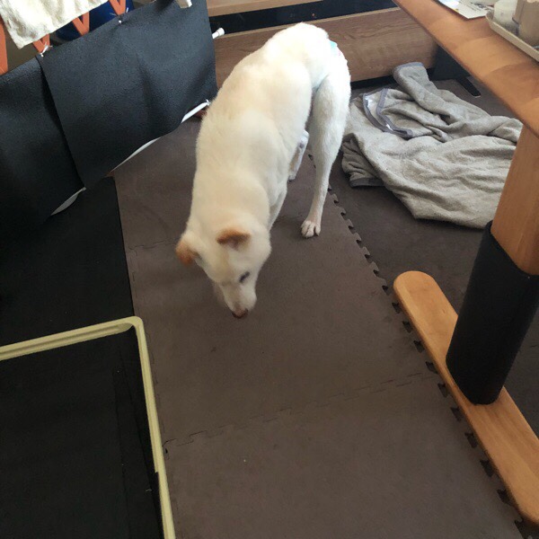 お散歩から帰って来ますと、御飯も食べ終わりまして、寝る寸前の状態😪