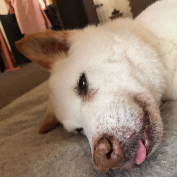 先に食べ終わってます グッチ君は、すでに夢の中でした💤