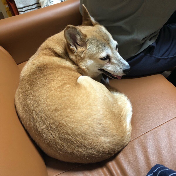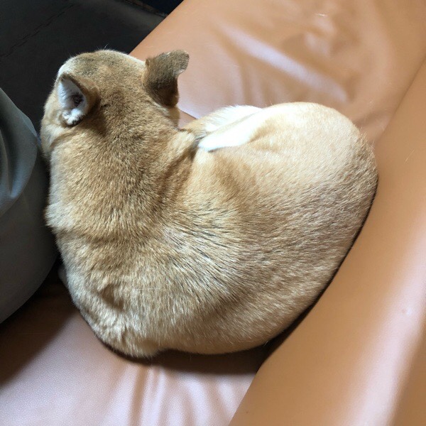グッチ君は、お散歩して 御飯食べて、先に 朝の お昼寝に入ってました💤