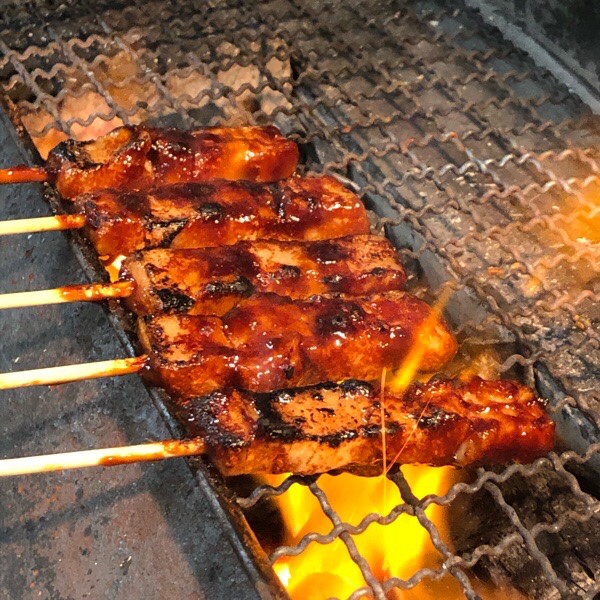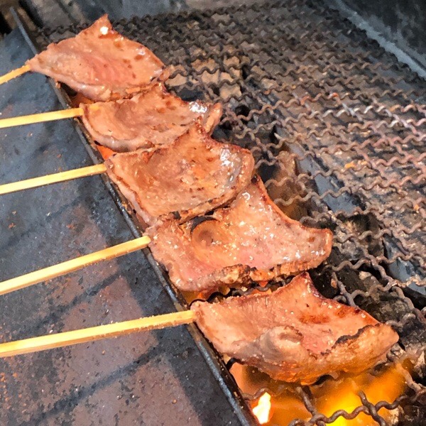炭火焼きとりは、牛タンとピートロ。