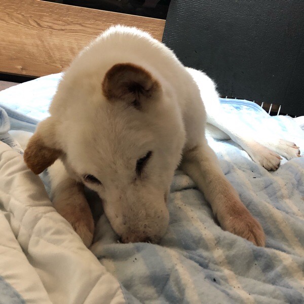 グッチおじーワンは、お散歩&御飯を済ませまして、オネムな感じ☺️