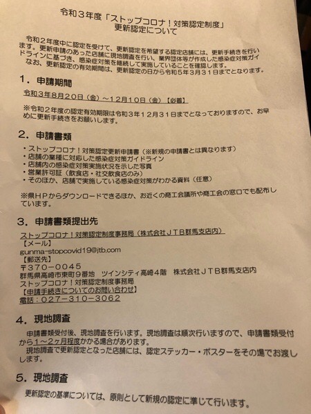 商工会の方へも寄りまして、ストップザコロナの更新用紙を。