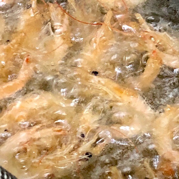 川海老とは また違う旨味があります、芝海老の唐揚げ。