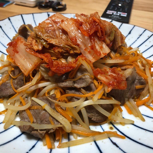 夜御飯は、ラムキムチ♪(*^^)o∀*∀o(^^*)♪