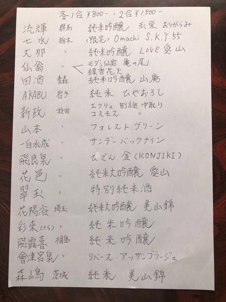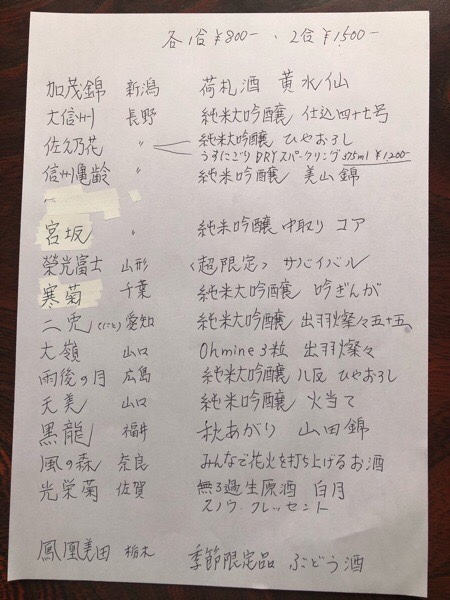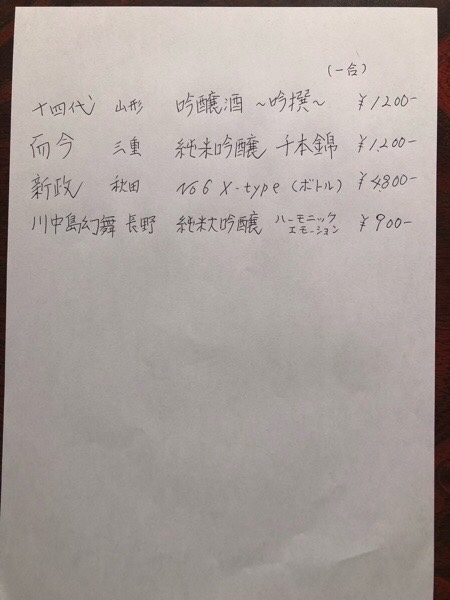 一部の物を除いて、一合¥800-・二合¥1500- となります🍶