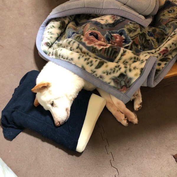 朝御飯食べて、自分の お布団で 朝の お昼寝タイムでーす💤