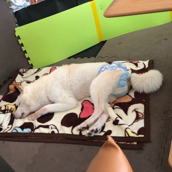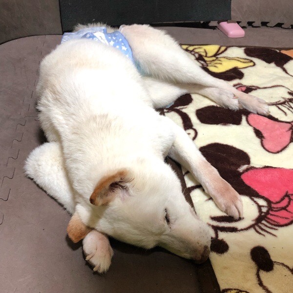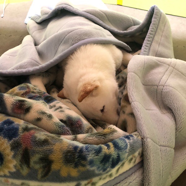 そのおかげ?で、起きますと グッチ君に 毛布を完全に奪われておりまして、気持ち良さそうに爆睡してくれてました🐶