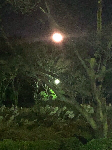 夜の お散歩に出ますと、お月様が低い位置でございました。