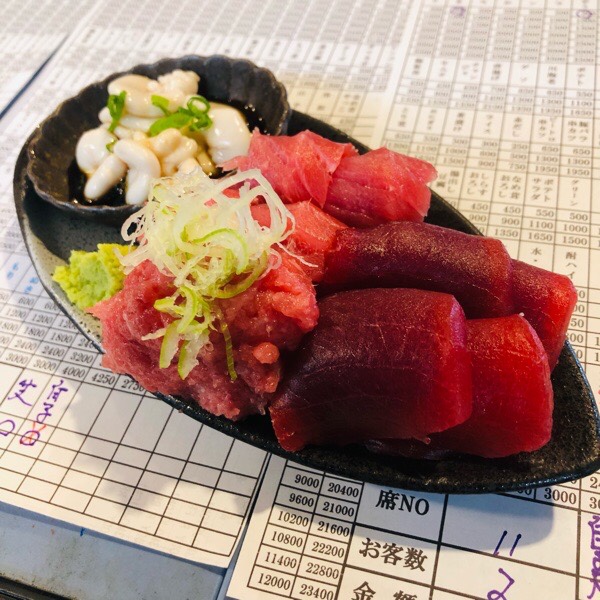 白子ポン酢付けちゃいましたの 名物まぐろ盛り。