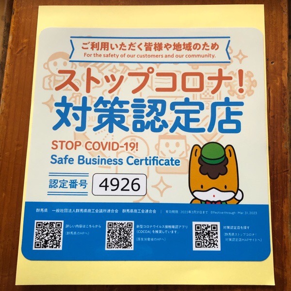 途中、県の職員の方が いらっしゃいまして、ストップコロナ!対策認定店の継続が決定しましたo(^-^)o