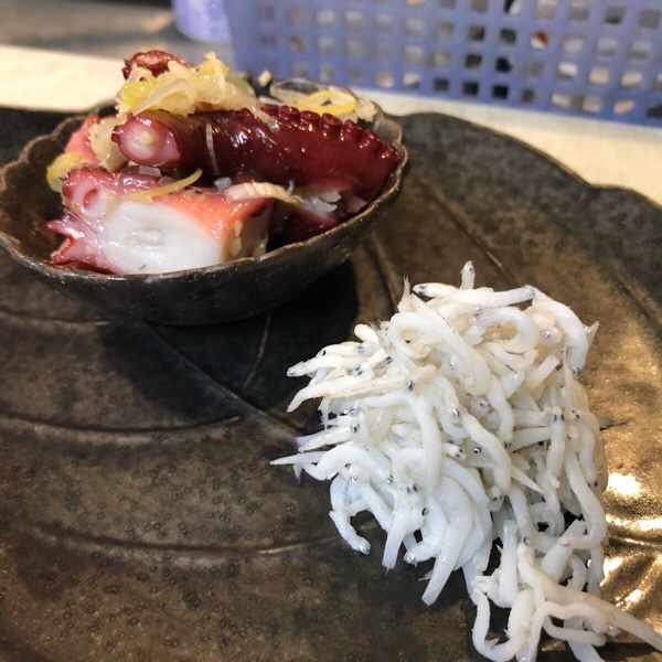 ガーリックタコブツと 釜揚げシラスが お通し。