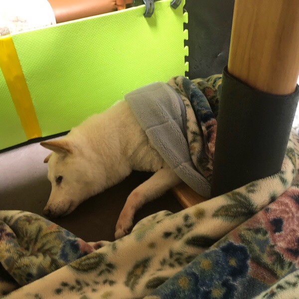 特技 : 飼い主の布団を奪い取る❗️という、我が家のボス、グッチおじーワンです🐶
