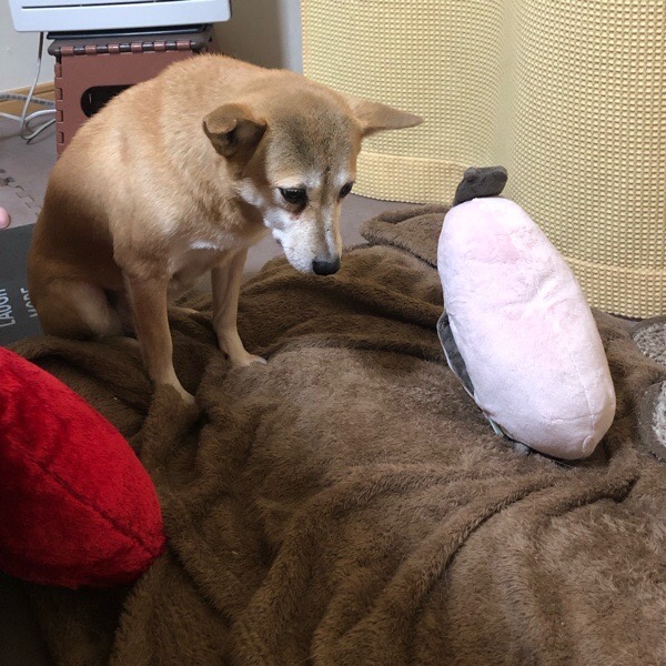 ヒバ子さんの前に ぬいぐるみを置いてみますと、ご挨拶⁉️