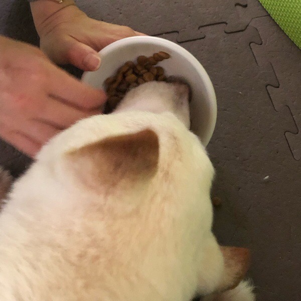 そんな遊びをしているうちに、グッチ君の御夕食😋