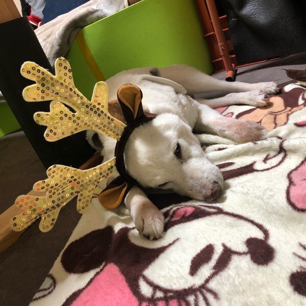帰宅しますと、珍しく 逆向きで寝ておりました グッチ君🐶