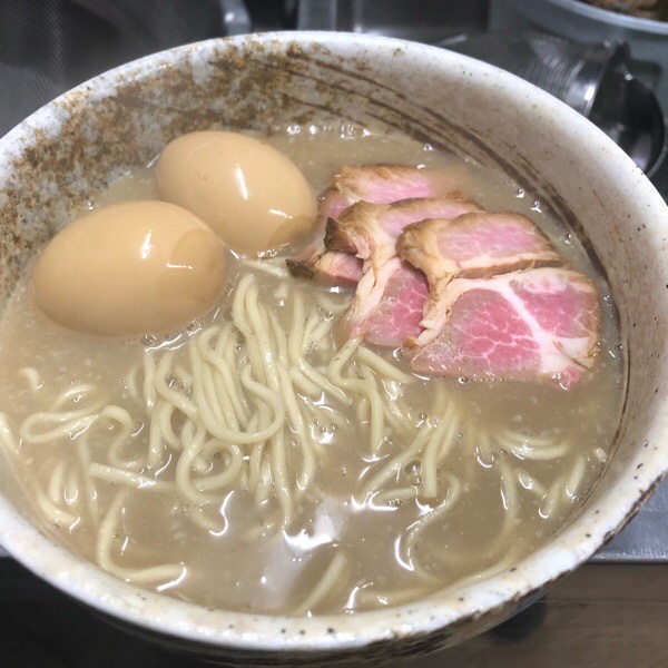 お店の準備を進めまして、ランチタイムは 前日に 弥七さんでテイクアウトしておきました、カニパイタンラーメン🦀