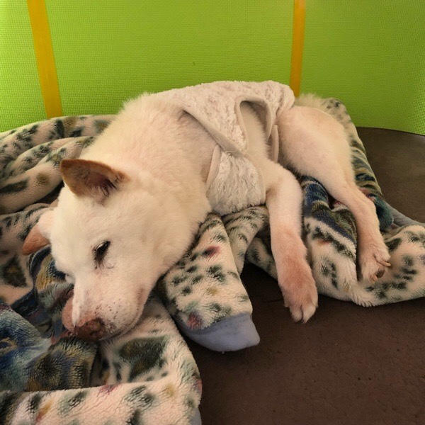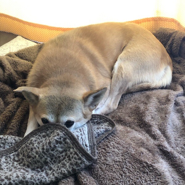 朝起きますと、グッチ君のお顔が無いな〜と思いましたが、しっかり瞬ぴぃの足元に寄りかかって寝ておりました☺️