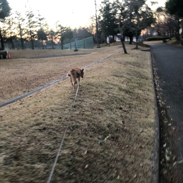 お月様が見える中、ヒバ子さんの お散歩へ!
