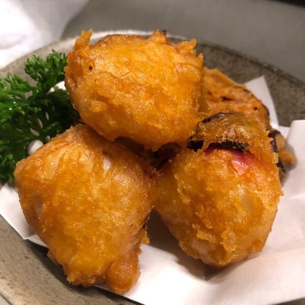 夕方 開店前に、お通し用のガーリックタコブツを仕込みましてー。