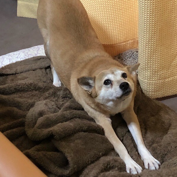 土曜日の朝も 瞬ぴぃの毛布を奪い取りまして、寝ぼすけのグッチ君🐶