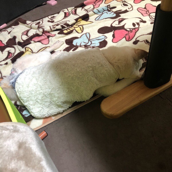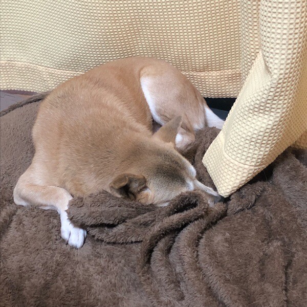 お家に戻りますと、アッカンベーで寝ておりました😆