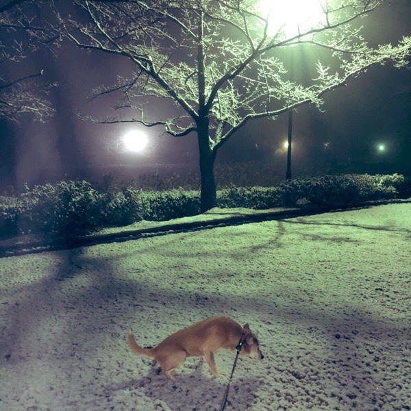 ヒバ子さんの 夜の散歩へ出ましたら、夕方から誰も来ていない感じで、足跡1つない雪景色でした(^ω^)
