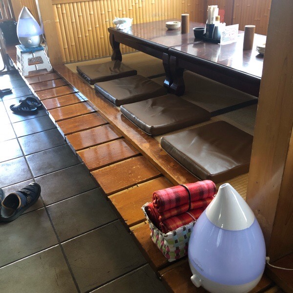 テーブルセットと加湿、そして 網戸にしたままでの換気で、開店!