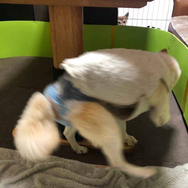 お家に戻りますと、グッチ君も クルクル回って お散歩しておりましたー!