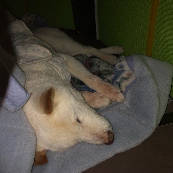 瞬ぴぃは すり抜けの術しまして、グッチ君に掛け布団しましてー☺️