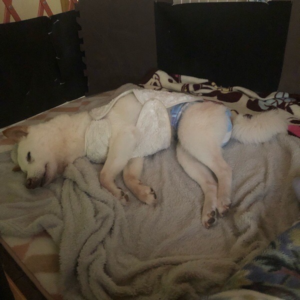 朝起きまして、グッチ君は スヤスヤと夢の中💤