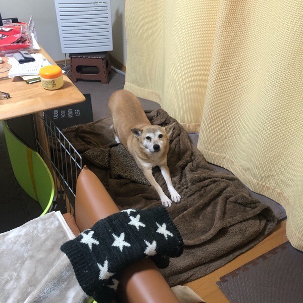 ヒバ子さんは 起きたまして、お散歩行くよー!の合図で、伸び〜ッをしまして⤴️
