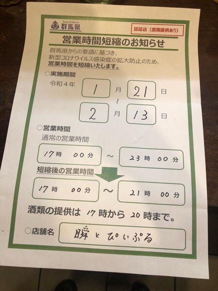 瞬ぴぃは、群馬県から認証を受けておりますので、お酒の提供な可能となります。