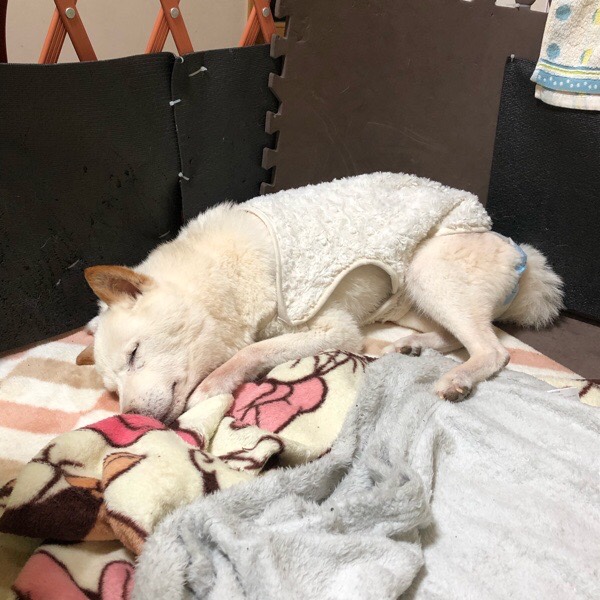 やっぱり寝相が よろしくありませんが、本人は満足そうでございます😅
