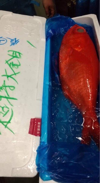 豊洲便が到着しまして、デッカい金目鯛♪( ´θ`)