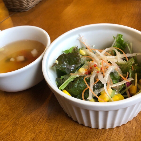 2人で取り分けるランチをチョイスしまして、スープとサラダから⤴️