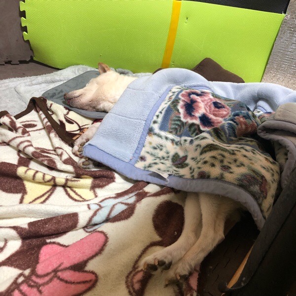 お布団から出ました、グッチ君は マイペースに 御飯食べて またまた のんびりと夢の中へでございました🤤