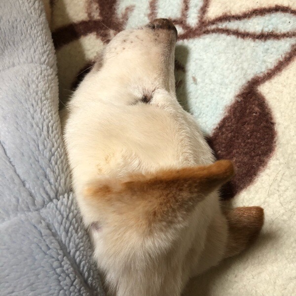 安定の朝でございまして、グッチ君 瞬ぴぃの毛布を占拠でございます☺️