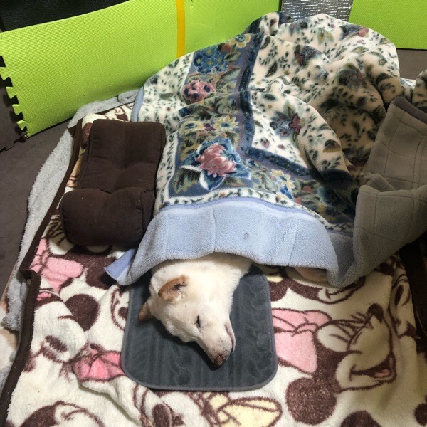 私は起きてますけどー❗️と、ヒバ子さんは お散歩待ちをしておりまして💦