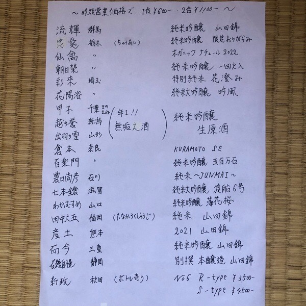 お腹もいっぱいになった所で、日本酒メニューを書き直し_φ( ̄ー ̄ )