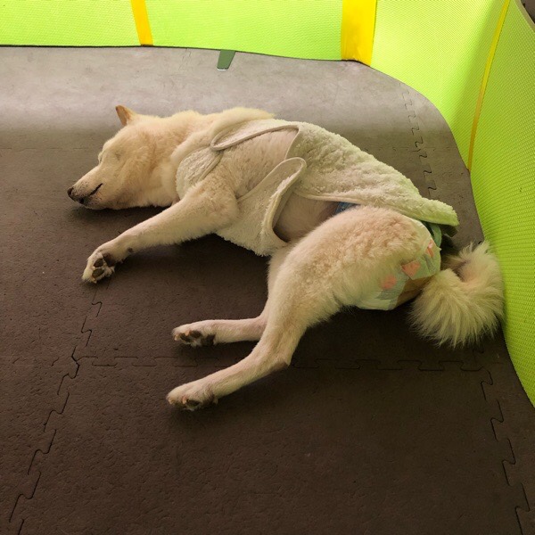 グッチ君…お布団を剥ぎ取りまして、いつもの寝相の悪さが出ておりました💦