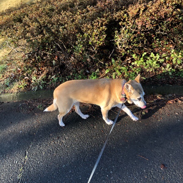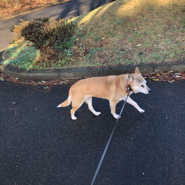 朝の お散歩、ヒバ子さんですが… 近くの広場で、 ワンコのイベントがあり、沢山の鳴き声が聞こえてきて ビビッておりました😅