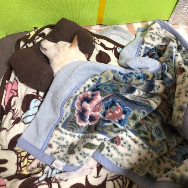 戻りますと、グッチ君 少し動いたようで、奥様に お布団かけ直してもらって、夢の中でございました(@ ̄ρ ̄@)