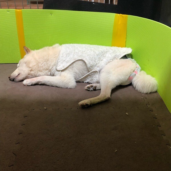 お写真は 日曜日の夜、寝る時のグッチおじーワン🐶