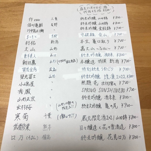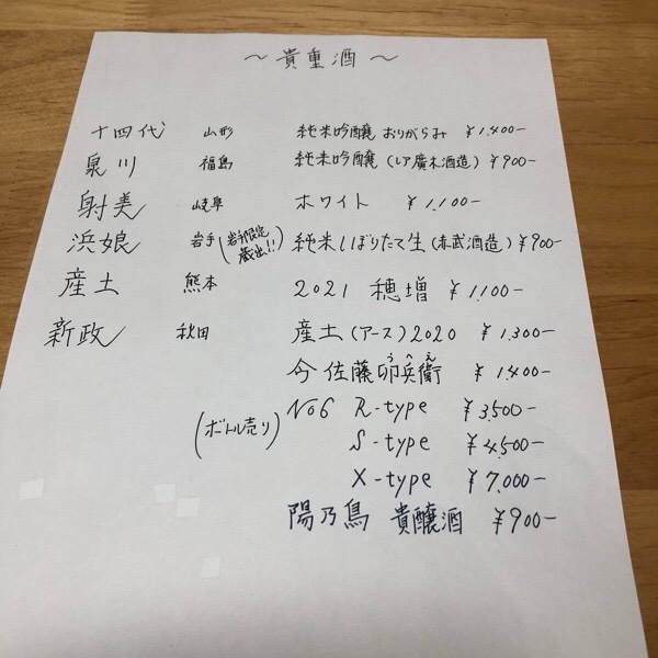 普段は お店で書きますが、お家で 日本酒メニューの書き直し_φ(・_・