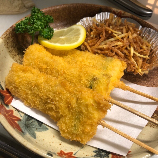 豚バラの串カツ。