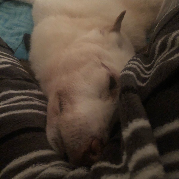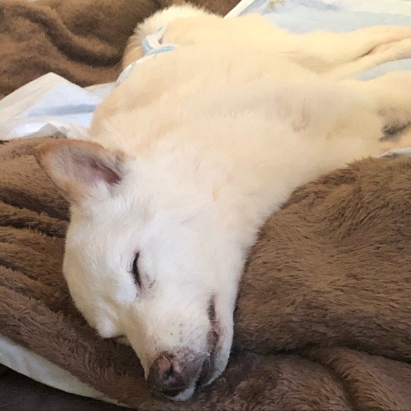毎日一緒に寝ておりまして、朝のグッチおじーワン🐶