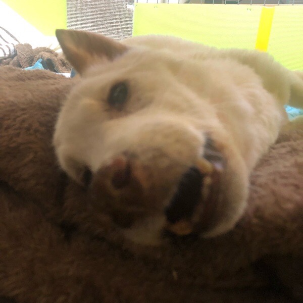 お散歩から帰ってきまして、まだ夢の中のグッチ君に起きてもらいまして😅