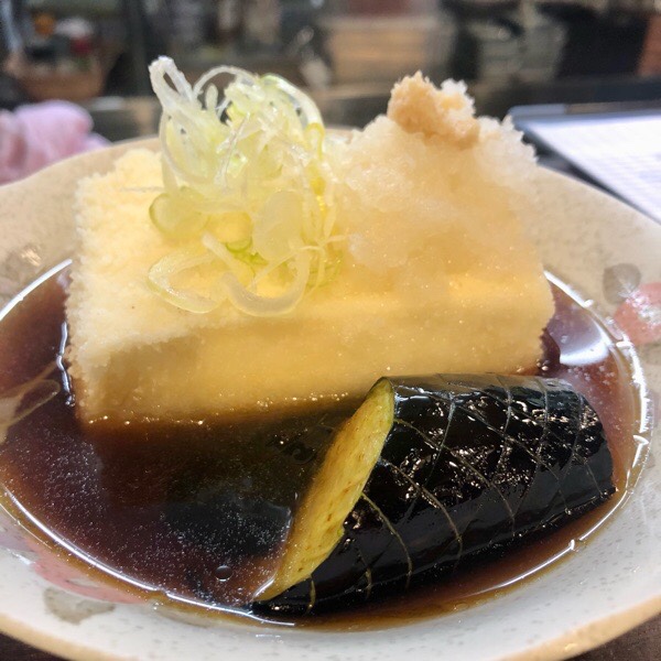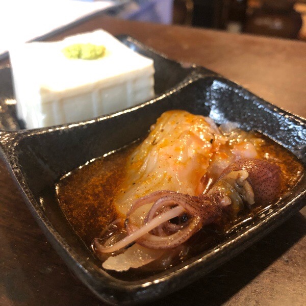 こだわり豆腐のヤッコとメジナとホタルイカのユッケの お通し。