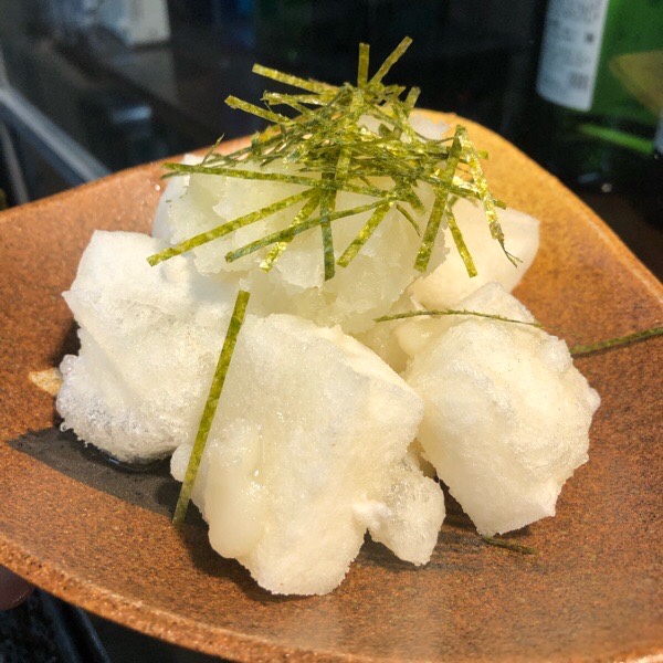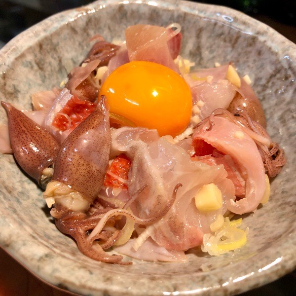 御予約様の御来店で、こだわり豆腐のヤッコとメジナとホタルイカのユッケが お通し。